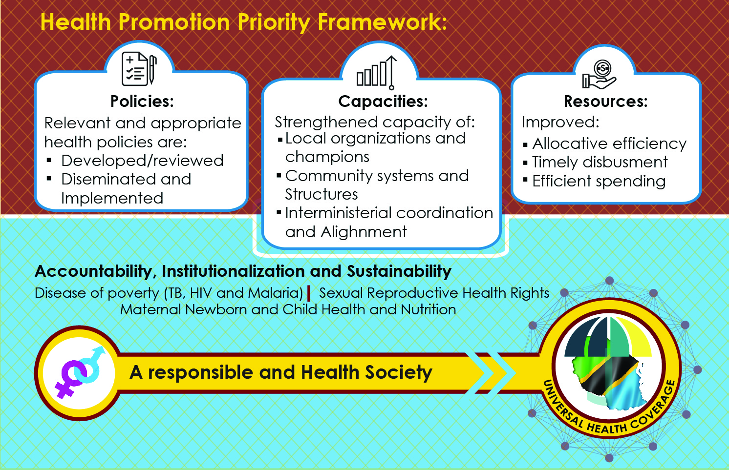To use Result based – human centered approaches to design and implement innovative Community and national level-based health related interventions that impact on maternal, newborn, child health and youth